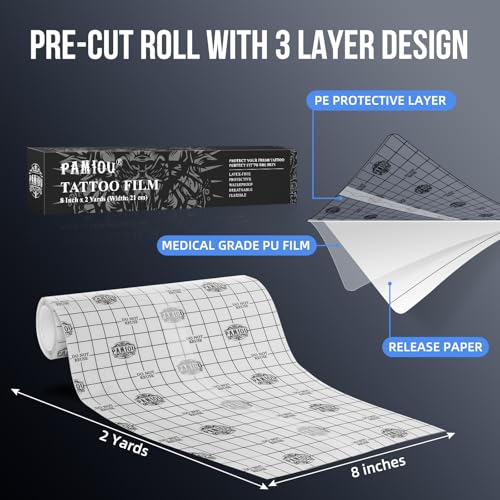 - EXCEPTIONAL SAFETY STANDARDS AND LATEX-FREE - Pamiou Tattoo Aftercare wrap is coated with high-quality glue imported from Germany, 100% Latex-free, meticulously crafted to ensure your skin receives the best care.