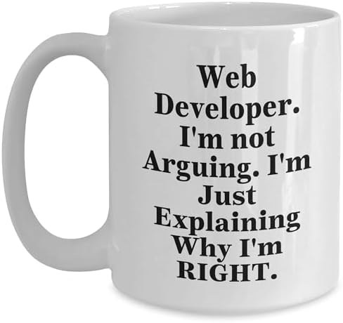 - This White Coffee Mug is printed with the motivational quote: 'Web Developer. I'm Not Arguing. I'm Just Explaining Why I'm Right.' If you use simple words, this quote simply means that a Web Developer is willing to explain his reasons until the other person understands why he is right.