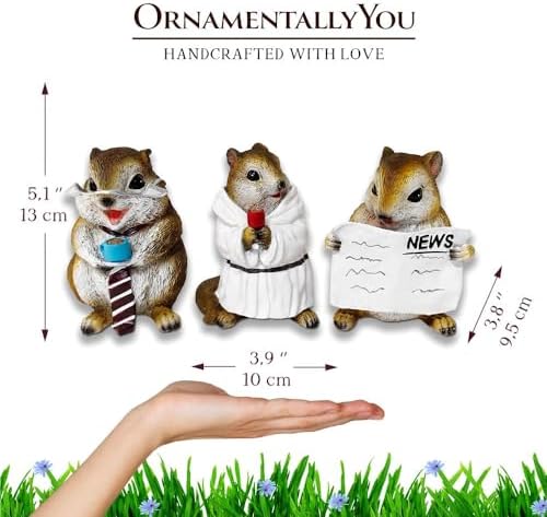 Whimsical Chipmunk Trio Set of Three Figurines, 5" Cute Desk Decor and Garden Statues