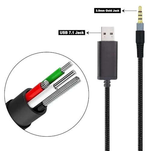Cloud Alpha USB Cable, Nylon Braided OFC Replacement USB A 7.1 Surround Sound Cable Extension Cord For Kinston HyperX Cloud Mix Alpha, Redragon H510 Zeus Gaming Headsets