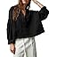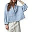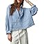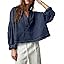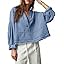 PLNOTME Womens Denim Tops Pullover Trendy Casual V Neck Loose Fit Puff Sleeve Jean Cotton Shirts