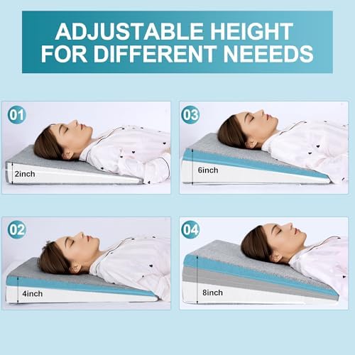 ROYALAY Adjustable Bed Wedge Pillow for Sleeping, Triangle Incline Wedge Pillow for Back Reduce Pressure, Memory Foam Pillow for Post Surgery, Back Support, Leg Elevation, Gerd Acid Reflux, Snoring