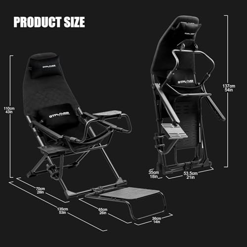 - 1.【COMFORTABLE COCKPIT】The GTPLAYER racing simulator cockpit features a carbon steel frame and a chair made of durable and soft suede, providing just the right feel. Due to its well-designed structure, the simulator cockpit is extremely stable and can support up to 150KG.
