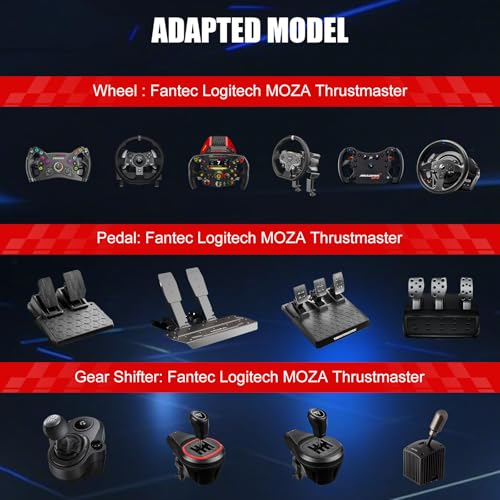- 2.【COMPATIBLE WITH MOST RACING WHEELS】The GTPLAYER racing simulator cockpit is compatible with most racing wheels, including Logitech models (such as G25, G27, G29, G920, G923) and Thrustmaster models (such as T248, T248X, T300RS GT, T150, T80, TX, T-GT, TS-PC, and TS-XW) and Fanatec models (DD1/ DD2 /CSL DD / DD Pro). It can be used with PS5, PS4, Xbox One, and PC platforms. (Note: Wheel, shifter, and pedals are not included.)