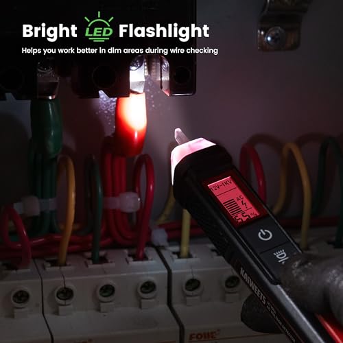 - NON-CONTACT: With NCV inductive probe for AC voltage; Just place the tip near a terminal strip, outlet, or supply cord. When the tip glows red and the pen beeps, you know there's voltage present. The live wire detector can automatically detect the live or neutral wire. Ideal for breakpoint Test. Handy circuit tester for electricians, homeowners