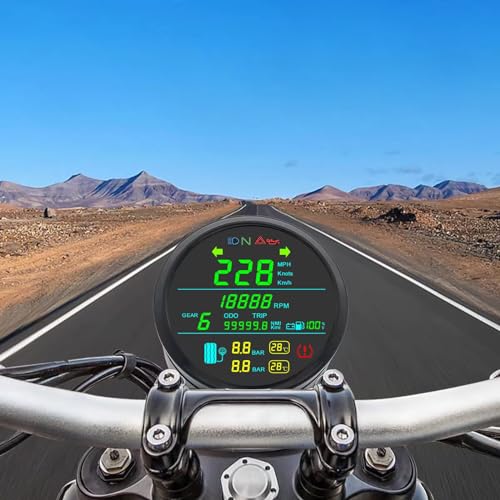 KAOLALI Digital GPS Speedometer, 85mm 3-3/8" Universal RPM Tachometer with Tire Pressure, Compass Driving Direction, Speed Indicator Gauge Meter, for Motorcycles Boats Cars Trucks Black