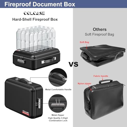 COLCASE Fireproof Document Box, Hard Case Fireproof Box with Lock Hard-Shell Design Fireproof Water Resistant Safe Box File Organizer for Important Documents Certificates Laptop Passports Black
