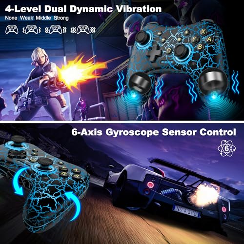 - 4-Speed Adjustable Vibration:The gaming controller has dual vibration motors, when you connect to Switch/Switch Lite/Switch OLED/Windows PC to experience the game, you can adjust the 4-speed vibration of No, Weak, Medium, and Strong according to your needs, and deeply restore the vibration feedback of the game. The smooth joystick and flexible buttons also bring you a surprising experience