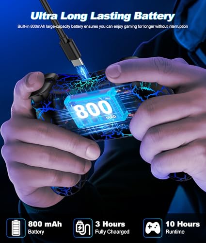 - 【1000MAH BATTERY CAPACITY】We've increased the switch controller’s battery capacity to 1000 mah just to provide a long time of fun. Package including a UBS-C charging cable, just charge 3 Hours for the wireless pro switch controller can provide 15 Hours, Get rid of the worry of “low battery” when you immerse in the games