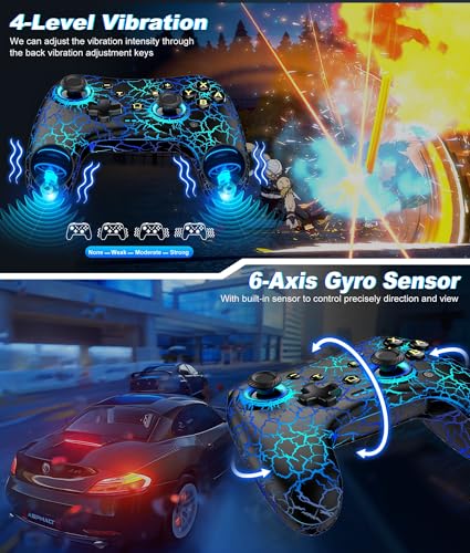 Wireless Switch Controller for Switch/Lite/OLED/Swicth 2 Controller, Switch Controller Joysticks Work with iOS/Android/PC-Switch 2 Pro TURBO Controller with Wake-up Programmable (Upgraded Vision) (Black-Lightning Light)