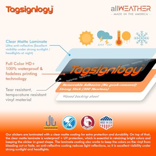 - [Proudly manufactured in the U.S.A.] These decals are commonly used in industrial, commercial, public and private settings. Warning: this is a Tagsignlogy copyrighted, original artwork and branded item. Purchasing from any source other than (Seller ID: Tagsignlogy) will likely result in receiving an inferior quality item. All designs are Federally Copyrighted.
