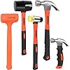 5-Piece Hammer Set, 2LB Dead Blow Hammer | 16oz Claw Hammer | 16oz Rubber Mallet | 35mm Double-Faced Soft Mallet | 8oz Small Hammer