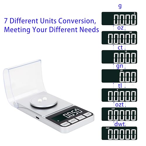 - Portable & Useful : With protective lid, this scale is durable and convenient, getting an accurate net weight of gold, silver, coins, powder, medicine, jewelry, gem or any item that you need precise accuracy. The large backlit LCD automatically lights up with each measurement so you can easily read the results.