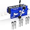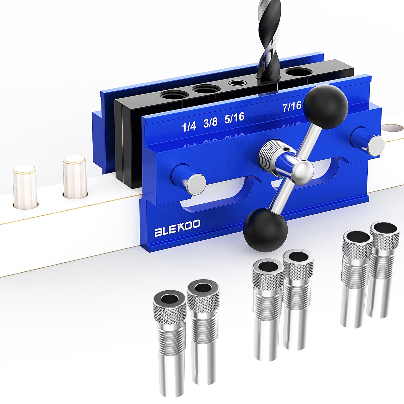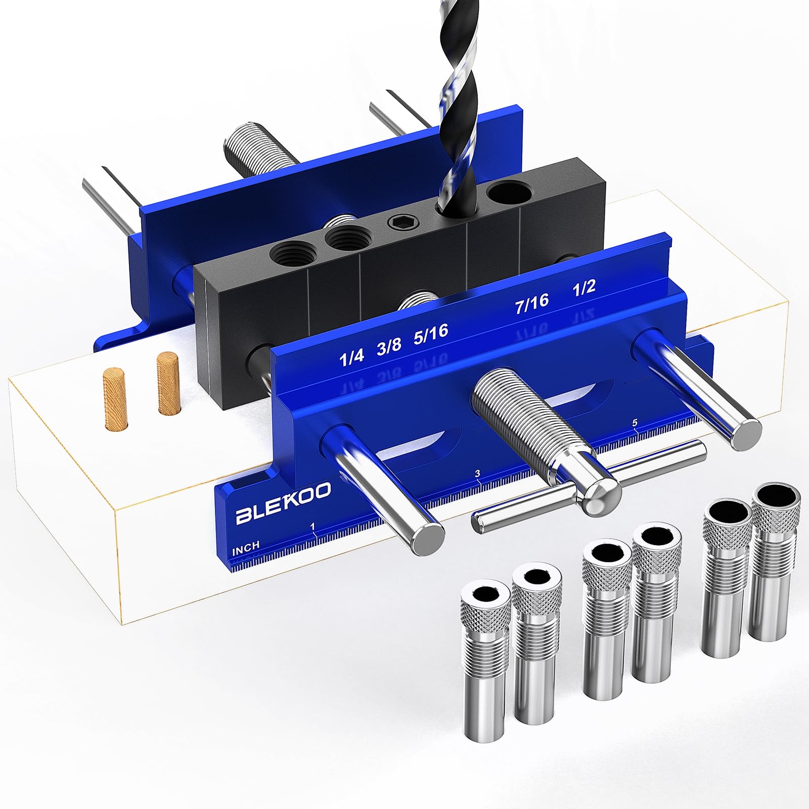 Upgrade Self Centering Doweling Jig Kit, Drill Jig For Straight Holes Biscuit Joiner Set With 6 Drill Guide Bushings, Adjustable Width Drilling Guide Power Tool Accessory Jigs (Blue)