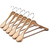 Suit Hangers 6 Pack Wooden Hangers,Heavy Duty Coat Hangers,Wide Shoulder Hangers with Non Slip Pants Holder,Suit Hangers for Men for Women,for Suit,Coat,Jacket,Pants (Natural)