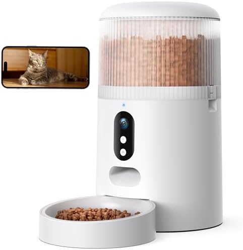 faroro Automatic Cat Feeder with Camera, 3MP HD Video & Night Vision, 5G/2.4G WiFi Smart Pet Feeder with APP Control, 2-Way Audio, Motion Alerts, Low Food Sensor, Timed Cat Feeder for Cats & Dogs, 4L