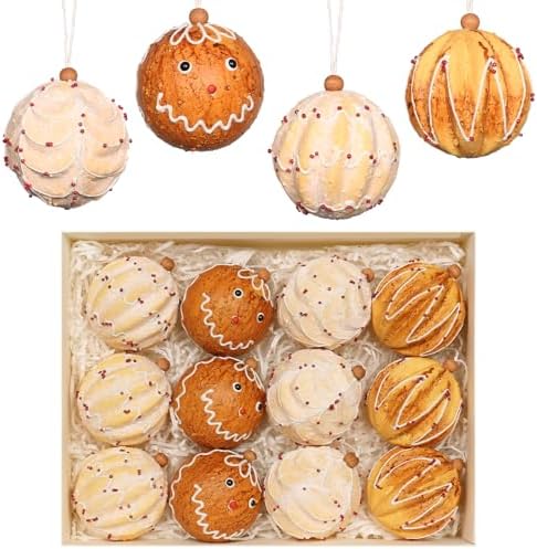 SY Super Bang 3.14"/80MM Baking Christmas Ball Ornaments, 12PCS Rustic Shatterproof Christmas Tree Hanging Decorations, for Home Indoor Farmhouse Thanksgiving Xmas Vase Bowls Filler Centerpiece Decor