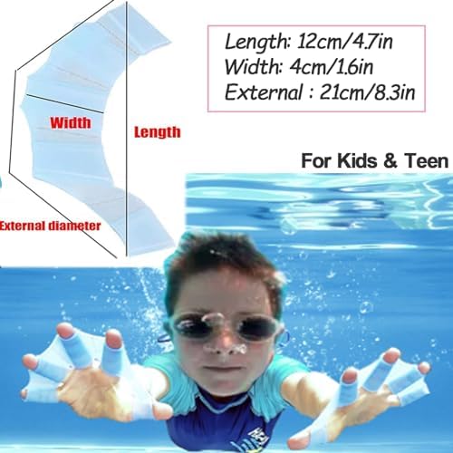 - Sized designed for kids and teen, your kids only need to wear them on five fingers; They can provide maximum efficiency in swimming.