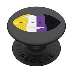 Non Binary Lips Flag design, great for anyone who identifies as Non Binary Support for the Non Binary community Adhesive backing attaches the PopGrip to your case or device. Will not stick to silicone, leather, waterproof, or highly textured cases. Works best with smooth, hard, plastic cases. Not compatible with wireless charging Printed top is swappable with other compatible PopGrip models. Just press flat, turn 90 degrees until you hear a click and remove to swap.