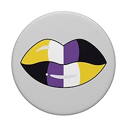 Non Binary Lips Flag design, great for anyone who identifies as Non Binary Support for the Non Binary community Adhesive backing attaches the PopGrip to your case or device. Will not stick to silicone, leather, waterproof, or highly textured cases. Works best with smooth, hard, plastic cases. Not compatible with wireless charging Printed top is swappable with other compatible PopGrip models. Just press flat, turn 90 degrees until you hear a click and remove to swap.