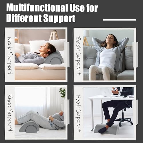 ROYALAY Half Moon Bolster Knee Pillow for Legs, Knees, Lower Back and Head, Adjustable Semi Roll Round Lumbar Support Pillow for Bed Sleeping, Health Large Half Moon Pillow for Reduce Pressure,Gray