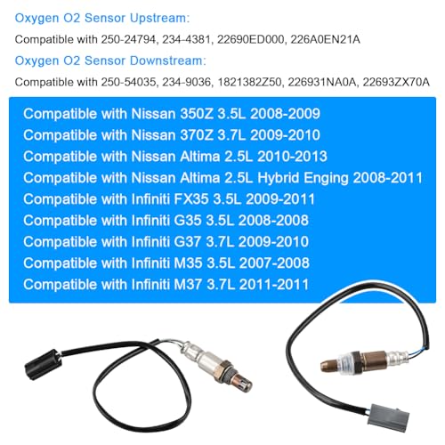 - Fitment: JDMON O2 oxygen sensor compatible with Nissan Altima 2.5L 2010-2013, compatible with Nissan Altima 2.5L Hybrid Engine 2008-2011, compatible with Infiniti FX35 3.5L 2009-2011. For more applicable models, please refer to the description.