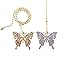 Light Pull Chain Extender, Ceiling Fan Pull String Extension Cord, Decorative Crystal Rhinestone Butterfly Ornaments for Lamp Fixture Girls Women Decor Gifts(Green & Assorted Color)