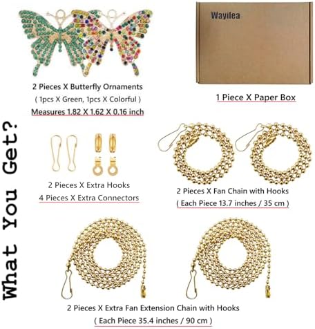 - εїз 1 Green & 1 Colorful Butterfly -- Measures approx 1.82 X 1.62 X 0.16 inch, Bling Bling pretty Butterfly fan and light pull chain set.