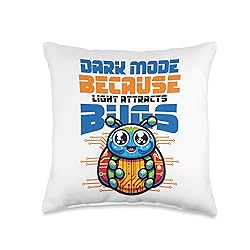 Funny debugger design to work long hours of solving code puzzles. Great code debugging and programmer motif. Dark Mode Because Light Attracts Bugs. 100% spun-polyester fabric Double-sided print Filled with 100% polyester and sewn closed Individually cut and sewn by hand Spot clean/dry clean only