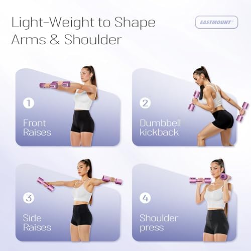 EAST MOUNT Adjustable Dumbbells 5 lb Dumbbells Set of 2 / Pair 10 lb Total Free Weights 6 in 1 Women Hand Weights for Home,Office,Gym Exercise Training 2lb 3lb 4lb 5lb Fast Adjust