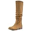 Shoe'N Tale Women's Knee High Boots Flat Low Heel Slouch Pointed Toe Winter Shoes with Side Zipper