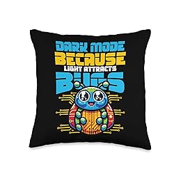 Funny debugger design to work long hours of solving code puzzles. Great code debugging and programmer motif. Dark Mode Because Light Attracts Bugs. 100% spun-polyester fabric Double-sided print Filled with 100% polyester and sewn closed Individually cut and sewn by hand Spot clean/dry clean only
