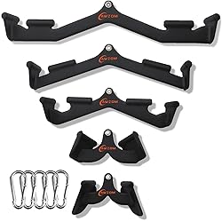 LAT Pulldown Attachments: Includes 5pcs LAT pull down bar and snap hooks. The manufacturing of LAT bar is highly standardized, integrating safety and comfort, and can be easily compatible with home and gym equipment Ergonomic Design: Dipping rubber encapsulation, specially designed for pull-down exercise, allowing users to change the way of back muscle exercise, fully exercise back muscles, minimize the loss of muscle strain, and make exercise more effective Upgraded LAT Bar: Our LAT pulldown bars are solid steel inside, rubber coating outside, thick and durable surface coating, through the dipping treatment, makes it much sturdy without worrying about bending, cracking and coating breaking off Faster Muscles Building: All the handles are customized according to back training. Perfect for tricep extensions, pull down and row movements. More grasp Angle and size choice, allowing you effectively strengthen triceps, lats,and other back muscles Professional Customer service: We provide quality service, our lat pull down attachment support Amazon's full range of tracking services, if you receive any questions after the pull down bar, please contact us immediately