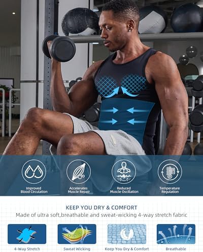 KOCLES Compression Shirt Men Slimming Undershirt Body Shaper Vest, Gynecomastia Compression Tank Top, Shapewear Tummy Control