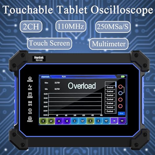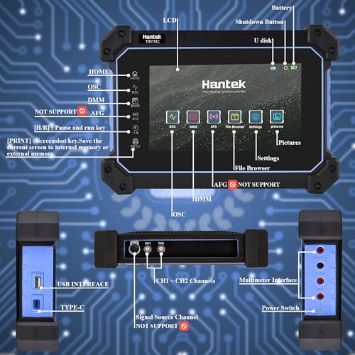 Hantek Tablet Oscilloscope 2CH Built-in Multimeter Function 8M Storage Depth with 7" TFT Touch Screen(TO1112C/110MHz Bandwidth)