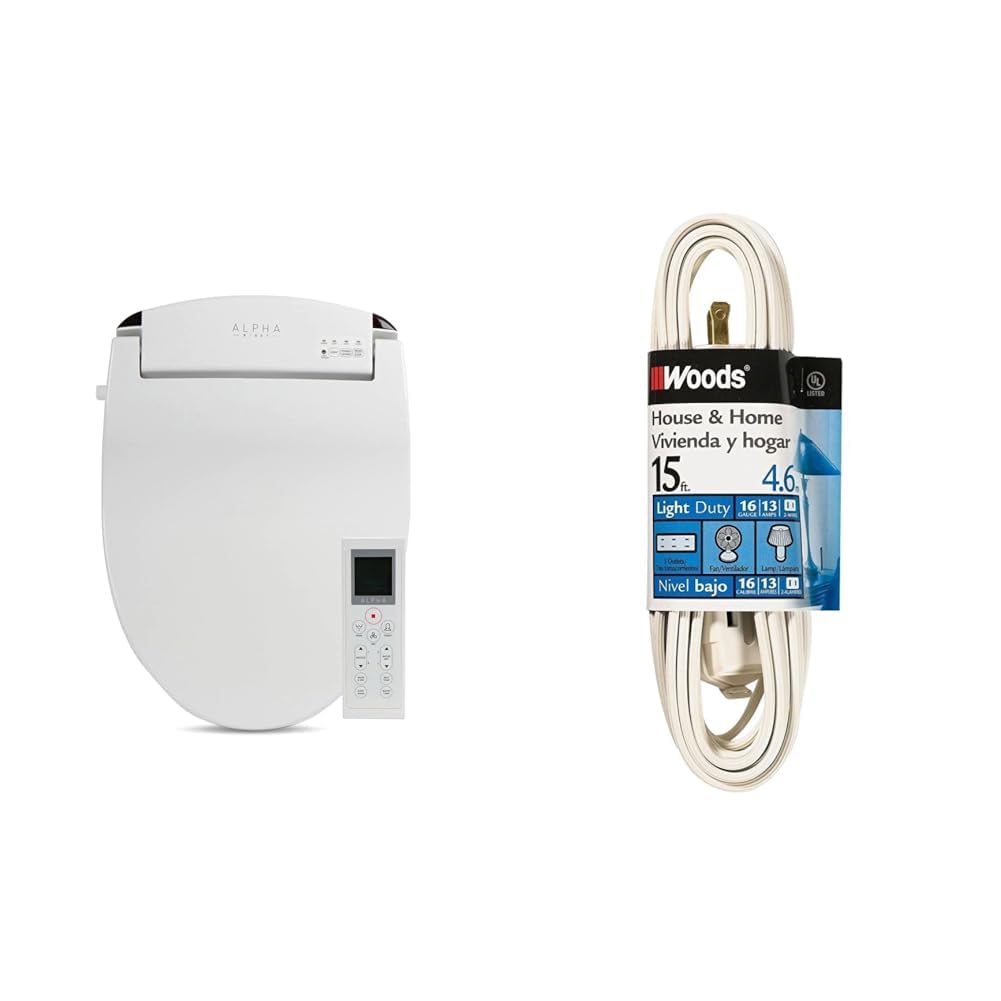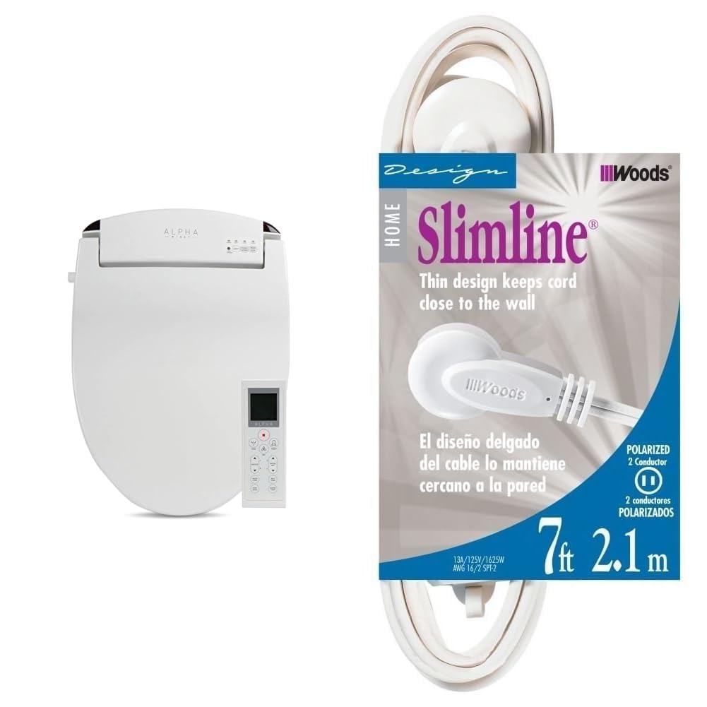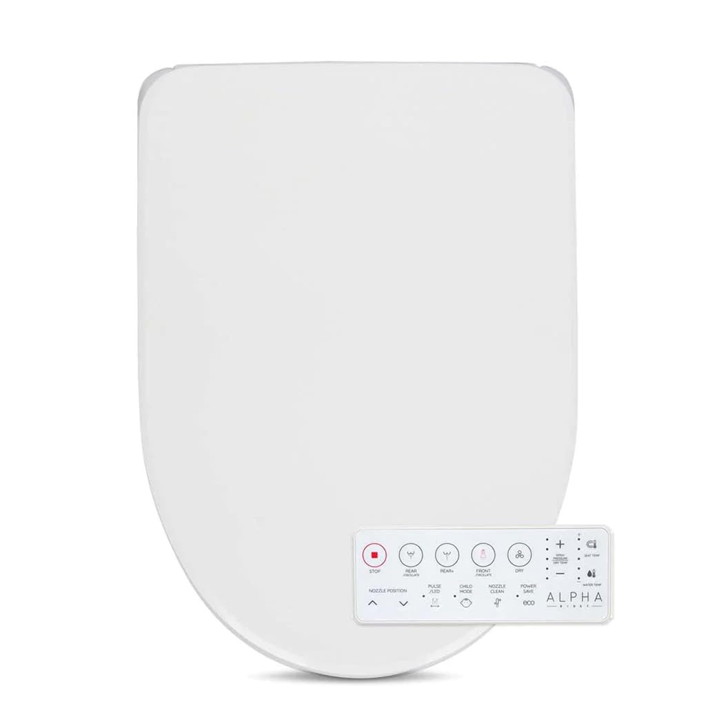 ALPHA BIDET UX Pearl Bidet Toilet Seat in Round White | Ultra Low Profile | Endless Warm Water | Arced Stainless Steel Nozzle | LED Nightlight | Dryer | Deodorizer | 3 Year Warranty