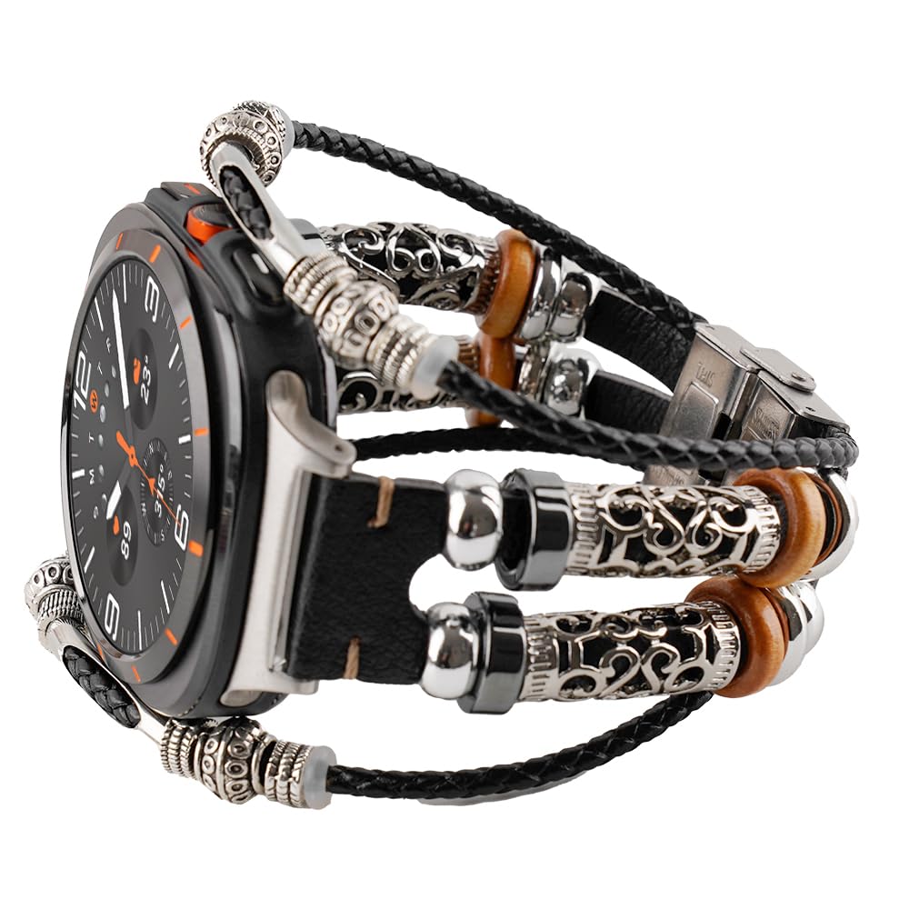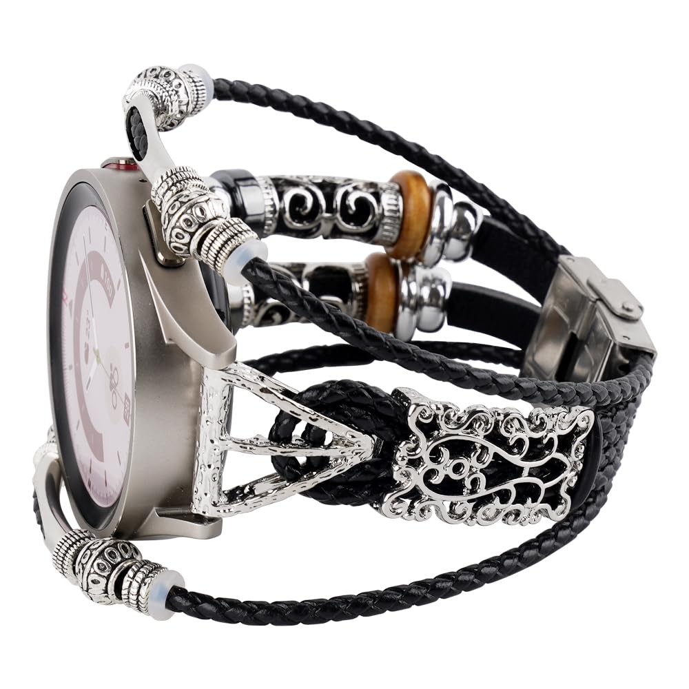 Leather Band Compatible with Samsung Galaxy Watch 7/FE/6/Watch 5/4/3 40mm 44mm, Men Women 20mm Jewelry Boho Strap for Galaxy Watch 5 Pro/Garmin Venu/Active 2/Watch 6/Watch 4 Classic