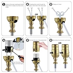 UL LISTED PUSH SWITCH LIGHT SOCKET -Standard U.S. lamp socket with a pushable on/off switch, easy ON and OFF,no turning a little knob, just A SIMPLE PUSH. Solid switch moves smoothly and last longer. 4 COLORS DESIGN WITH WIRE HOLE ON SOCKET BASE - The socket has 4 colors options that complements your existing lamp or home décor.It include the typical lamp fittings / threads,screw-in terminals.The wire hole on socket base offers a spare installation method that connect wire to the socket direct. APPLICATION - NECESSARY LAMP SWITCH REPLACEMENT if you replace 3-Way Bulb with standard LED Bulb.Go with single wattage bulbs and replace 3 way lamp socket with this single wattage switch light socket. Perfect for quick repair on an older lamp that needs to be saved. Easy to install and save your favorite lamp. Use the Push ON/OFF lamp socket with a desk or floor lamp to DIY unique lighting to your home. SAFE AND EASY TO USE - The push socket has a 250VAC/660W max electrical rating and can be used with #18 stranded copper wire.Easy to install and made for a quick fix within 30 minutes! WITH INSTRUCTIONS to guide you assembly process. No matter repair a vintage lamp or make a new custom lighting,you will have clear idea on each step through the wiring instructions.