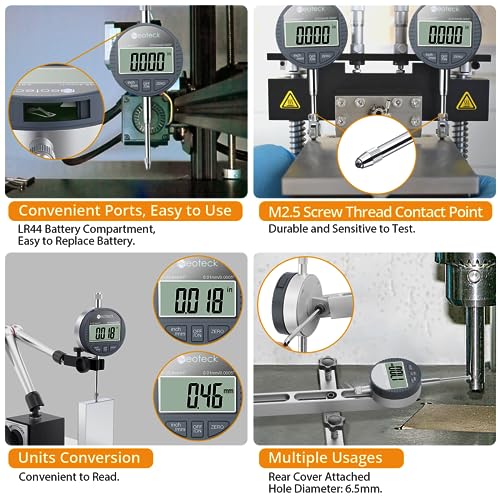 - Aluminum Alloy Digital Dial Indicator-- Large LCD Display with 3 Digits, Be Used to Accurately Measure Small Linear Distances in Mechanical and Industrial Processes without Reading Errors, An Ideal Tool for Mechanical, Industrial Processes and Laboratory Use