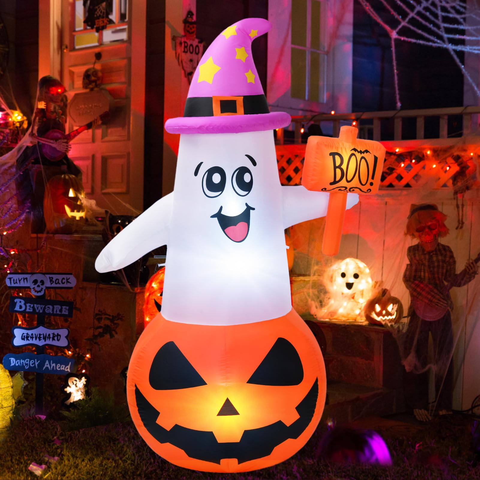 - Built-in 6 Ultra Bright White LED Lights: The blow up turkey inflatable is equipped with bright white LED light for better lighting effects at night. Whether placed in a garden, courtyard, or in front of a door, the super bright light will attract the attention of passersby. Blow up Thanksgiving yard decorations will be the coolest Thanksgiving decoration in the whole neighborhood!