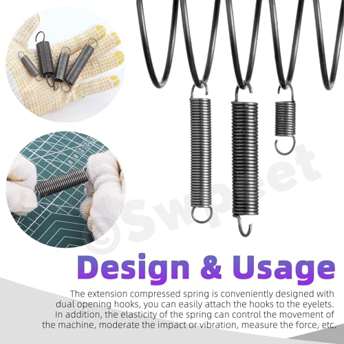 - 🥇 Reasonable Design ------ The extension compressed spring is conveniently designed with dual opening hooks, you can easily attach the hooks to the eyelets. In addition, the elasticity of the spring can control the movement of the machine, moderate the impact or vibration, measure the force, etc.