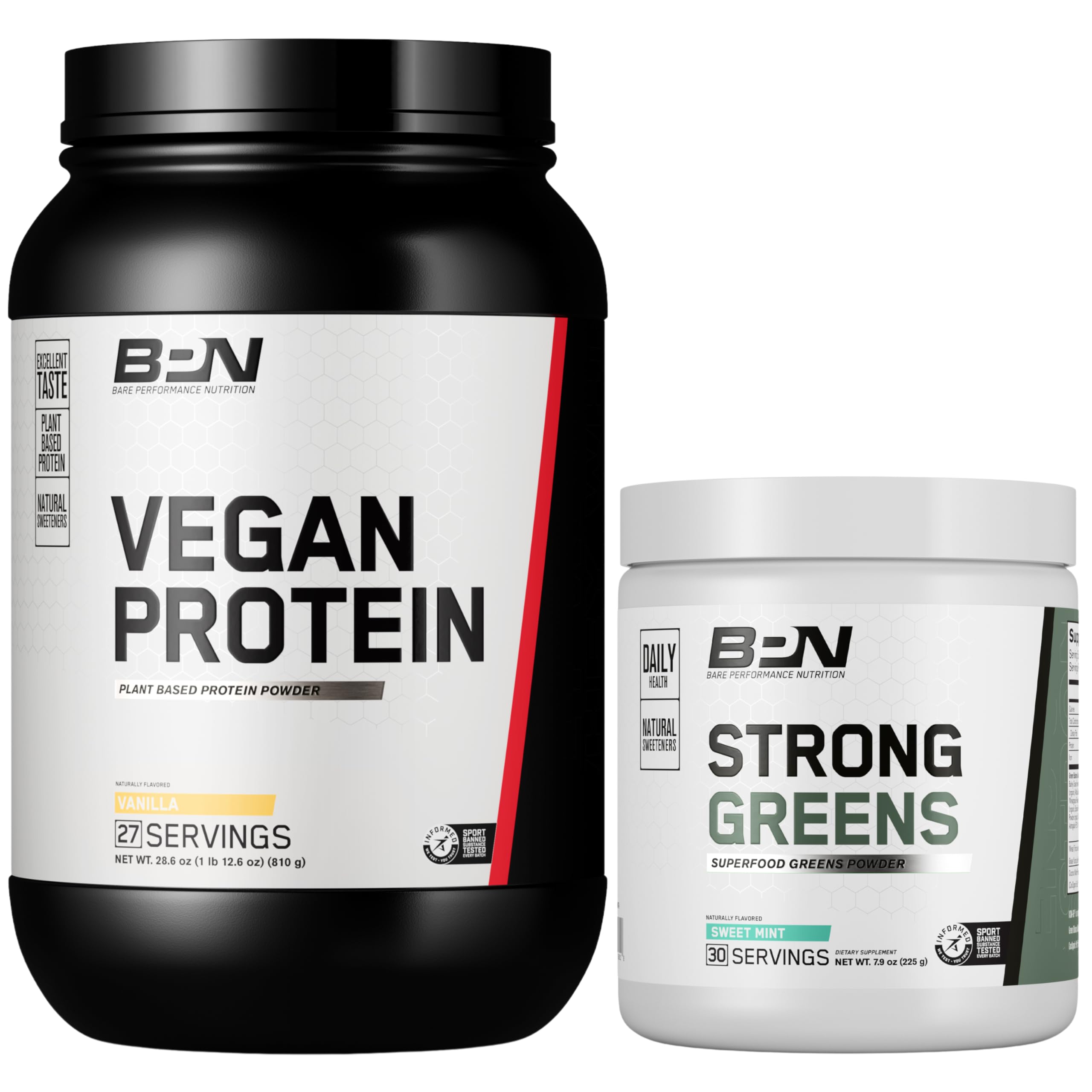 BARE PERFORMANCE NUTRITION BPN Vegan Vanilla Protein + Strong Greens Pineapple Coconut Bundle