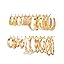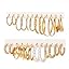 17IF 12 Pairs Golden Hoop Earring Set for Women Chunky Smooth Surface Trendy Small to Big Stud Earring Lightweight Twisted Pearl Ear Pack