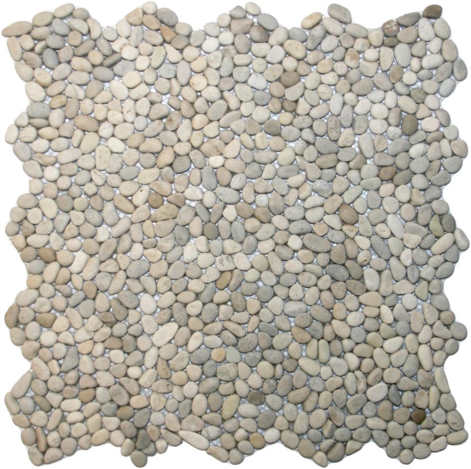 CNK Tile Mini Java Tan Pebble Tile – 12" x 12" Polished Natural River Stone Mesh-Backed for Easy Installation – Showers Bathrooms Kitchens Floors Walls – Weather-Resistant Low Maintenance – Pack of 1