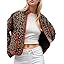 Yimoon Women's Cropped Puffer Quilted Jacket Vintage Floral Print Open Front Lightweight Short Jacket Outwear