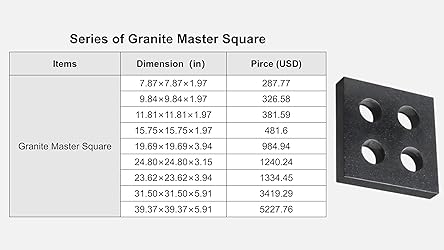 - Dimension:11.81×11.81×1.97" (300×300×50mm) Granite precision gauges are manufactured to ensure optimum stability of the raw material by releasing internal stresses through long term settling prior to manufacture. During production, it is finely hand polished to improve surface flatness, while advanced tools such as angle gauges and optical interferometers ensure perfect perpendicularity, in accordance with the stringent Class A and DIN 876/00 standards. Shipments are packaged with protective foam and each product is placed in a customized wooden box for secure packaging. The gap between the product and the box is filled with foam to provide shock absorption and prevent damage. Packaging meets aerospace grade standards to ensure safe transportation.