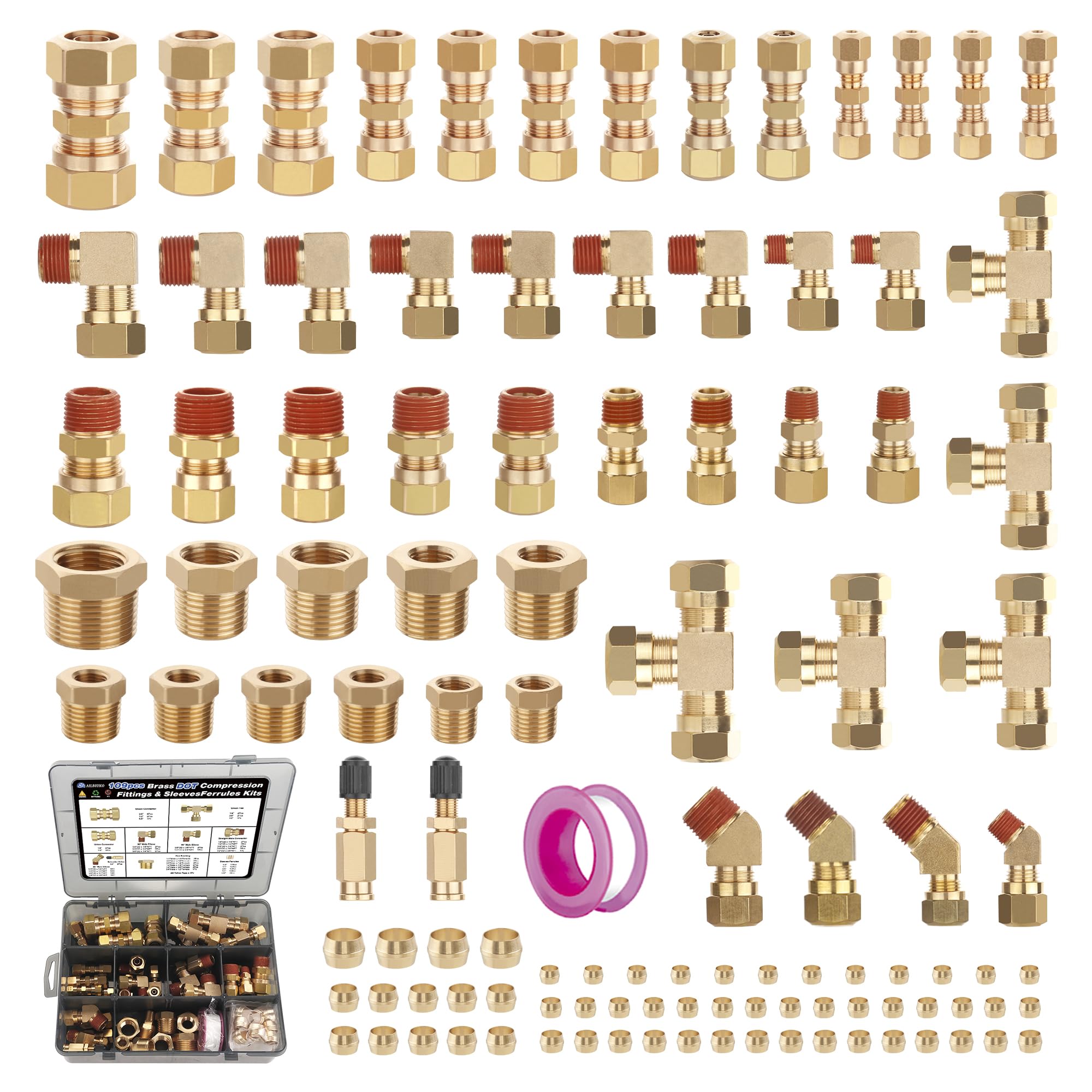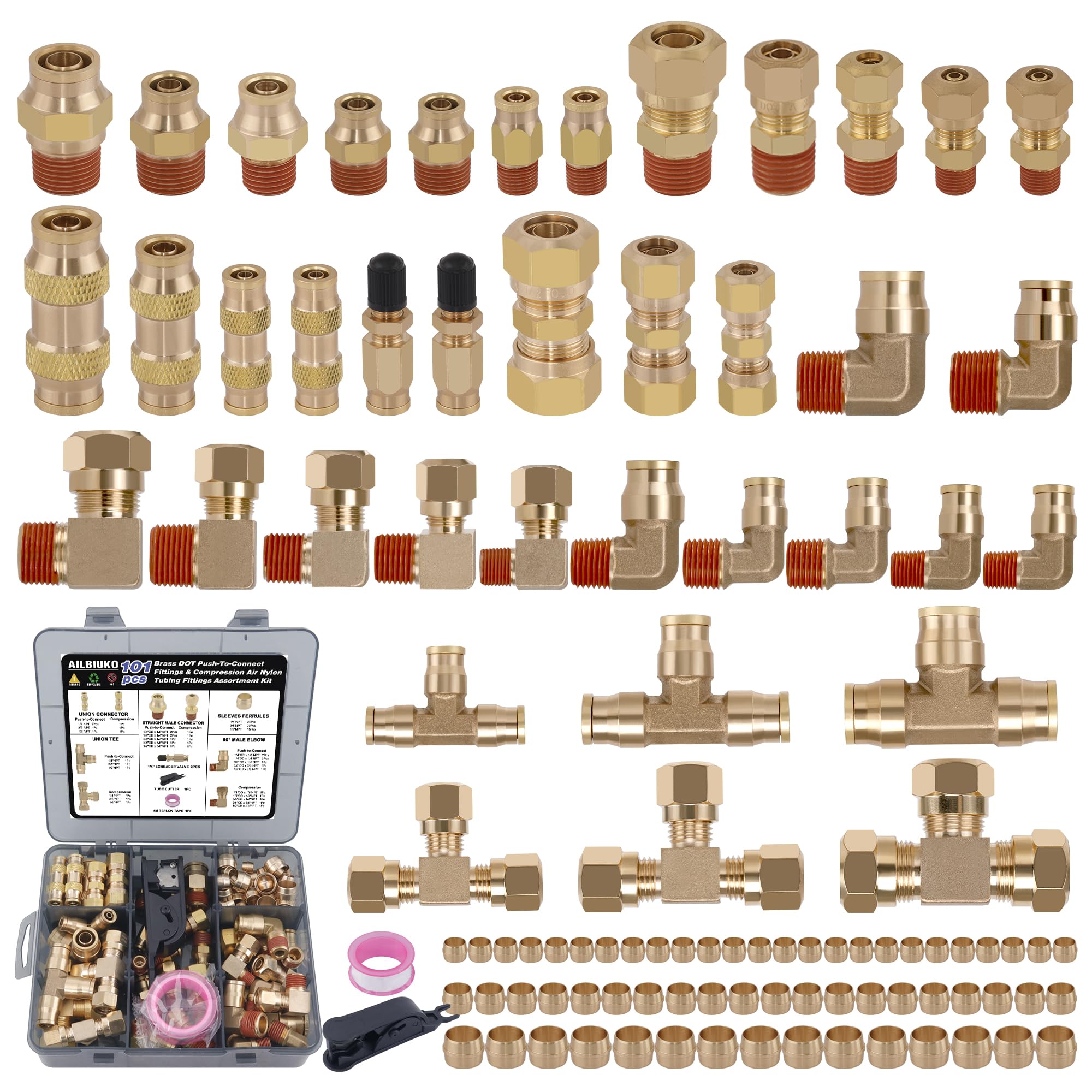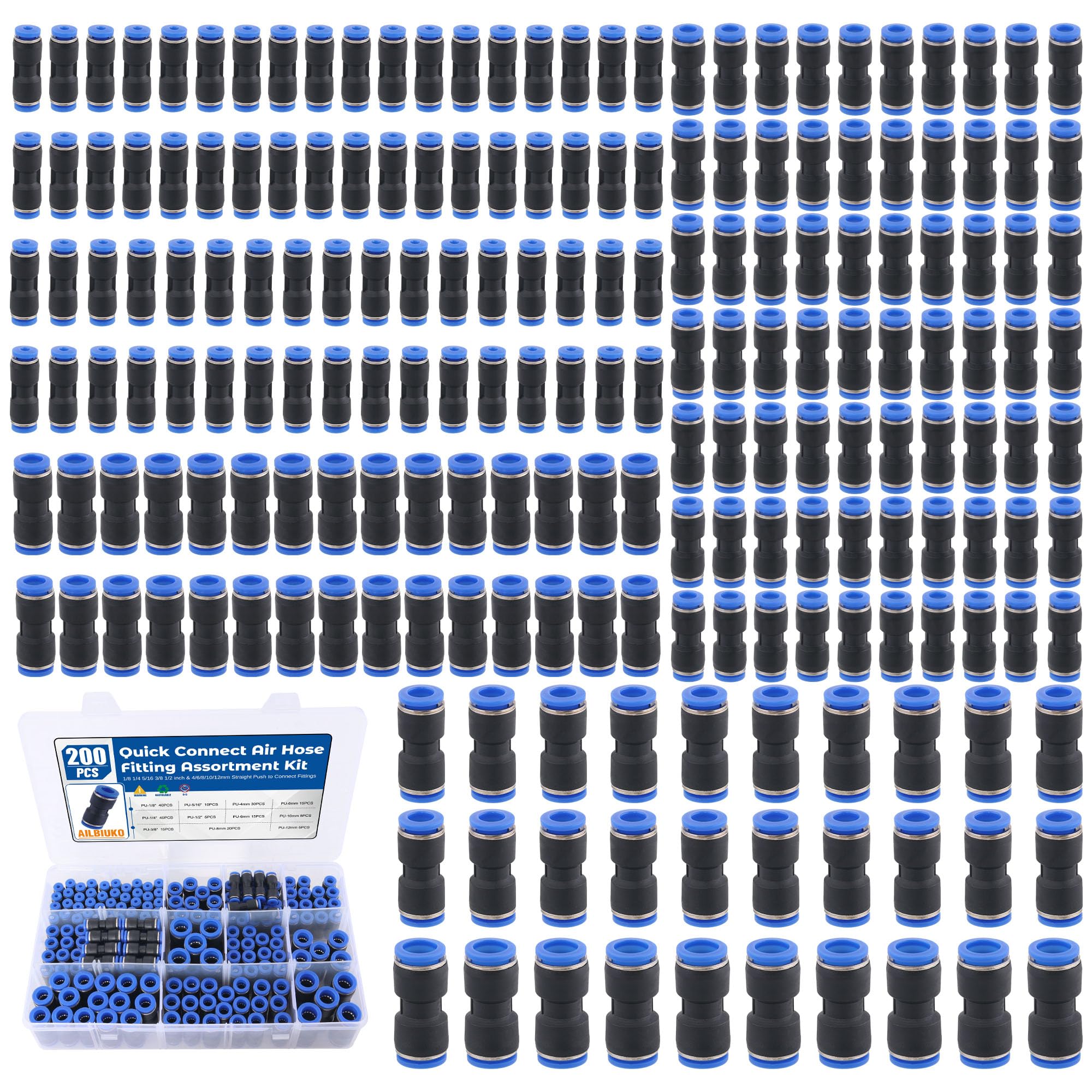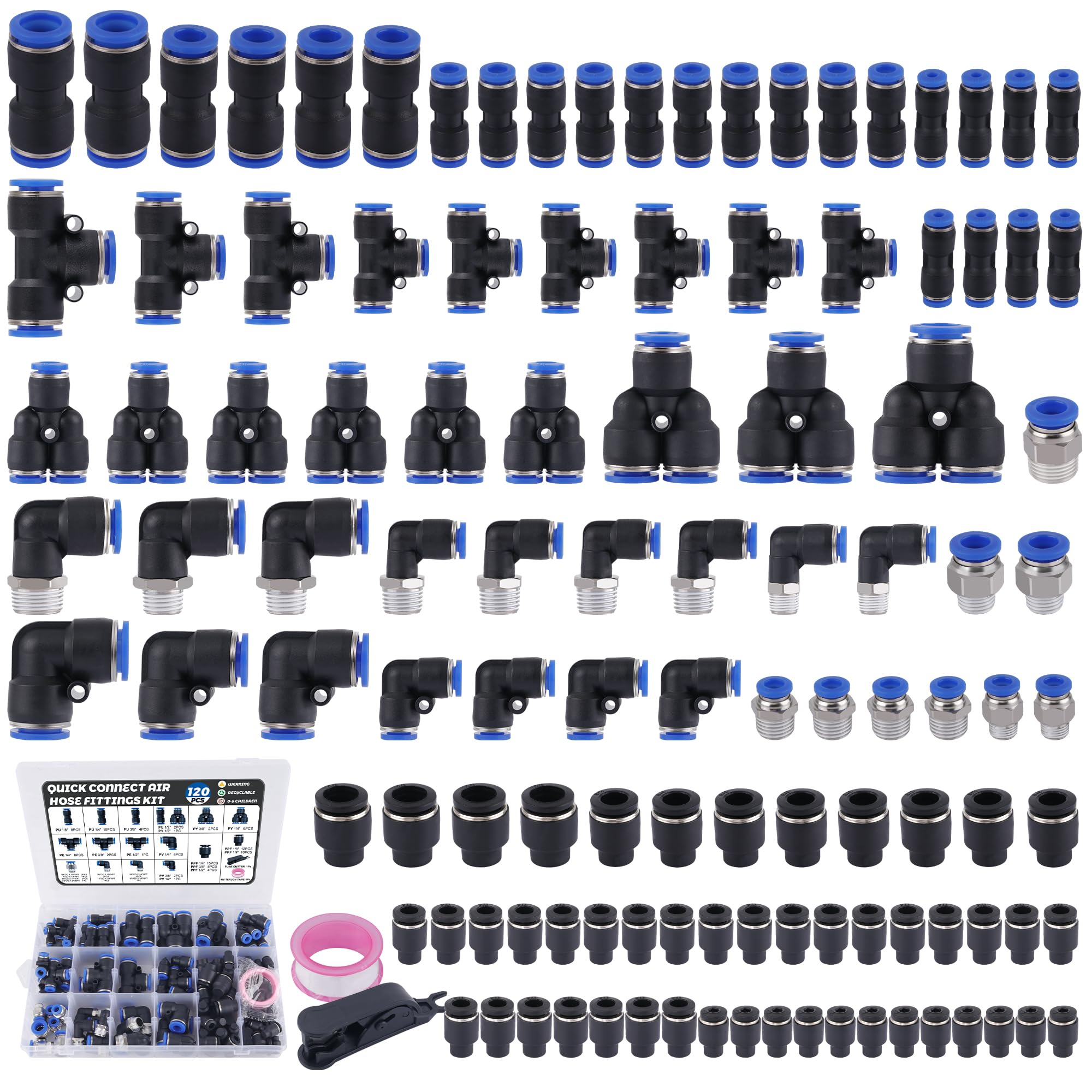 - VALUE PACK: 45-Pack 1/4" quick connect air fitting kit, which includes female air coupler x 4, male air coupler x 4, male air plug x 14, female air plug x 14, hex coupler x 4, hex nipple x 4, teflon tape x 1, which can almost meet your basic needs