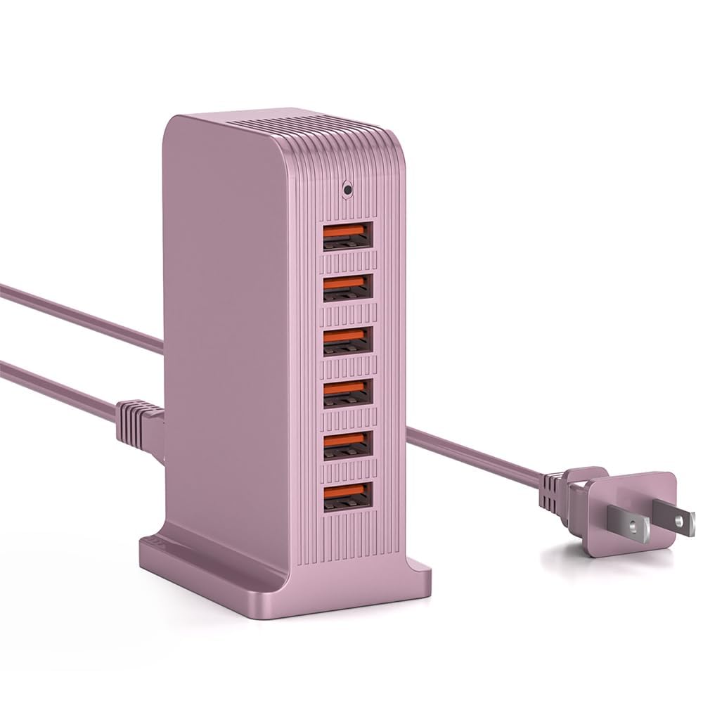 USB C Charging Station - USB Charging Hub,6 Port USB Charger Tower for iPhone 15/14/13/12, iPad, Samsung Galaxy, Google Pixel,HTC, and Multiple Devices (pink-50W)
