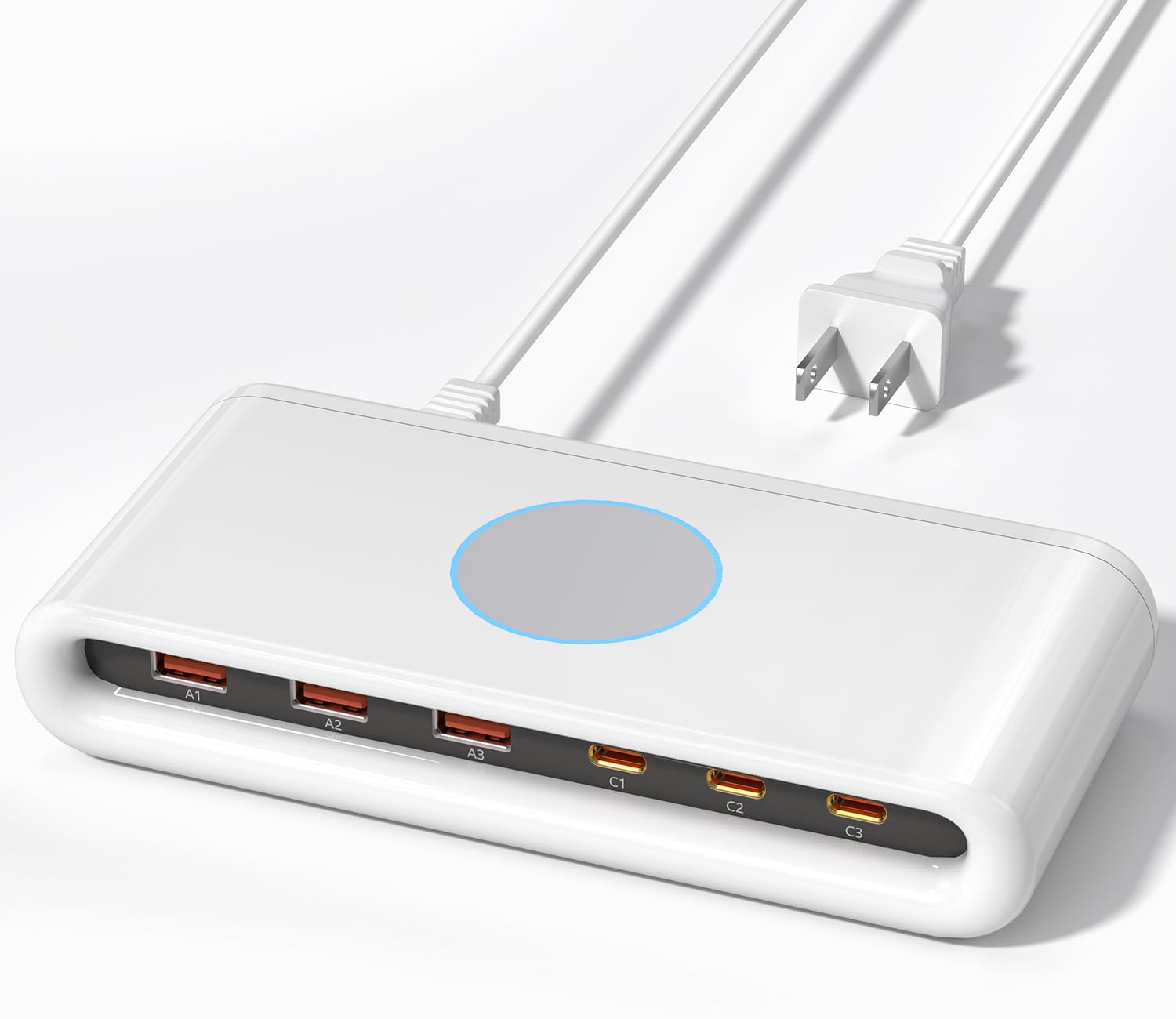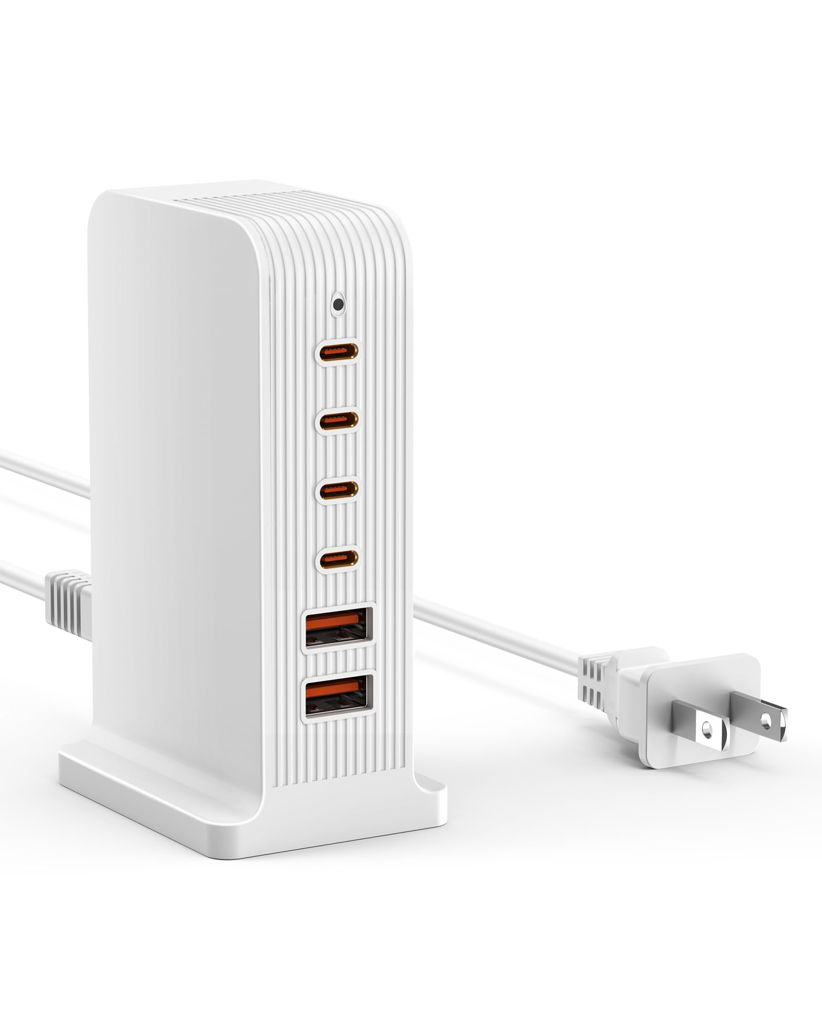 - Safe and Reliable USB C Charging-This 6 port usb charging station features multiple safety features to protect your devices while they charge. This USB multiport charger offers overvoltage, overcurrent, short circuit, and overheating protection, ensuring that your devices are always safe and secure while charging.