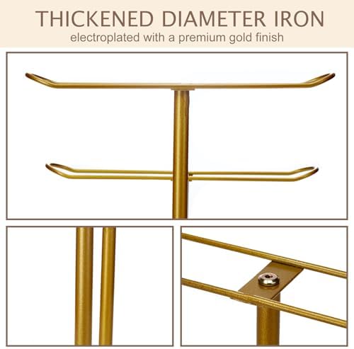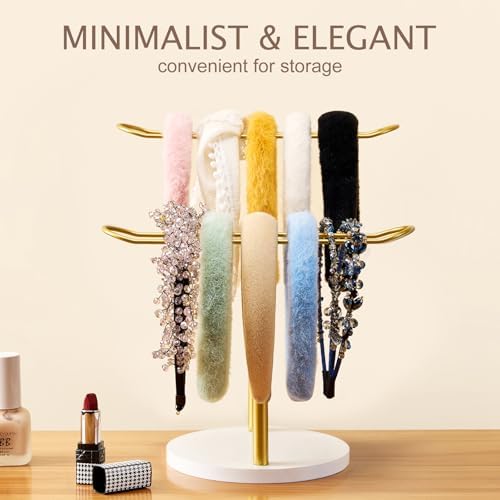 MoyRetty Headband Holder(Wooden Base), 2-Tier Metal Organizer Hair Hoop Display Stand Storage Hair Ropes Bow Accessories Bracelets Bangles Bedroom College Dorm Decor for Girls Women-Gold